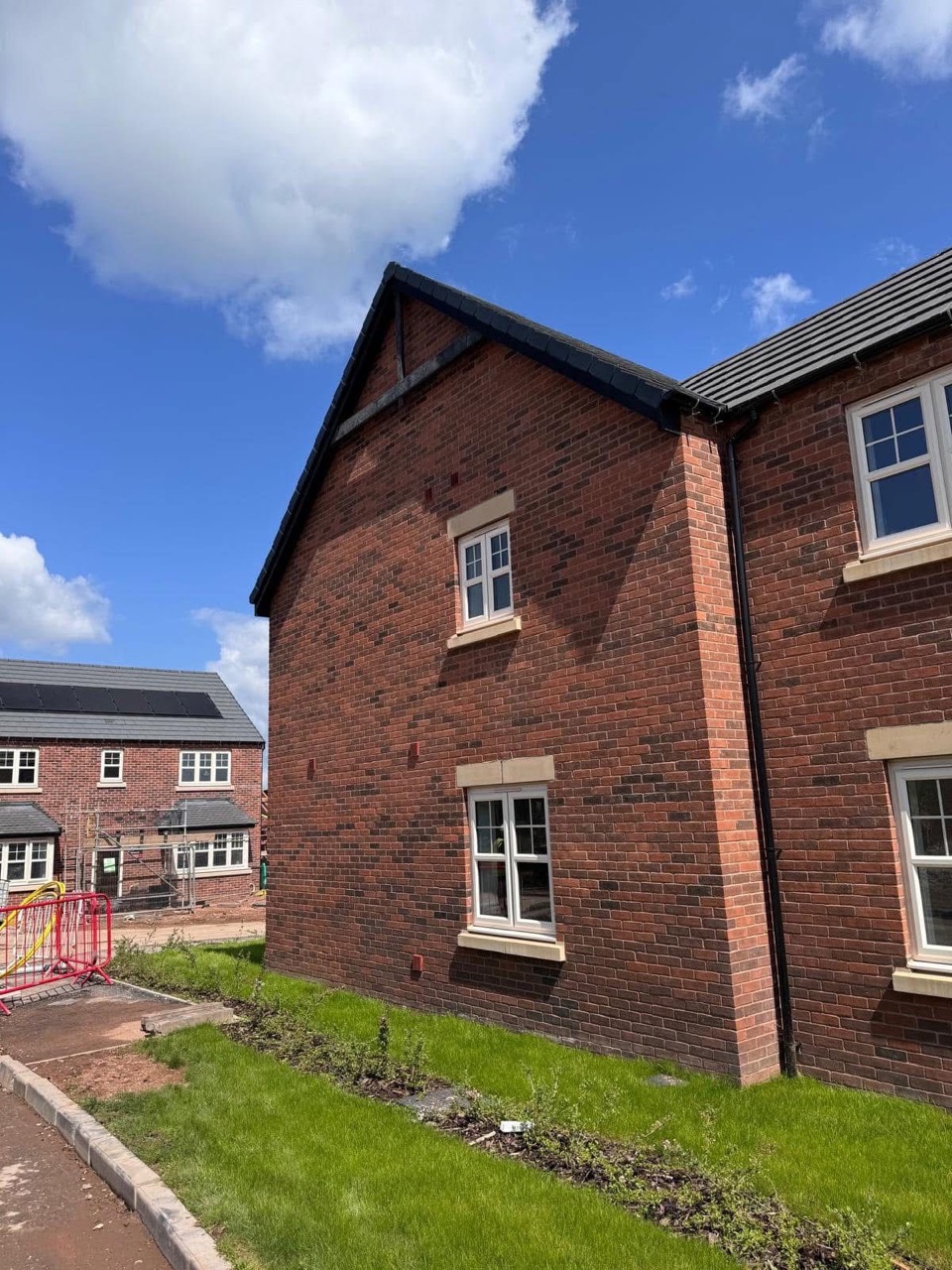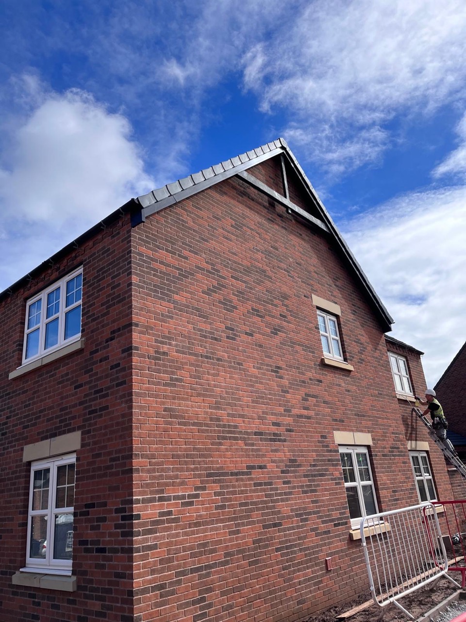 The homes featured quoins, dental work, eaves detailing, voussoir heads, GRP chimneys and other high-end features, requiring precision and consistent quality across all plots.